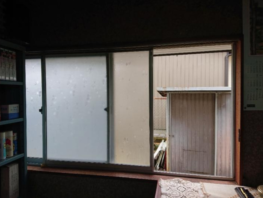 築40年以上のお宅で、内窓サッシ単板硝子に後付雨戸レールと戸袋付きの平屋。 |
